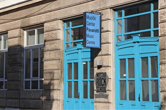 Muzički centar Pavarotti (PMC) je otvoren u nekadašnjoj zgradi osnovne škole u Mostaru, Bosna i Hercegovina, 21. decembra 1997. godine na inicijativu War Child UK, velikodušno podržane od strane g.Pavarotti-ja, Brian Eno-a, članova U2 i drugih umjetnika, da naprave muzički centar u postratnoj BiH u cilju pomoći ljudima BiH, posebno mladima.