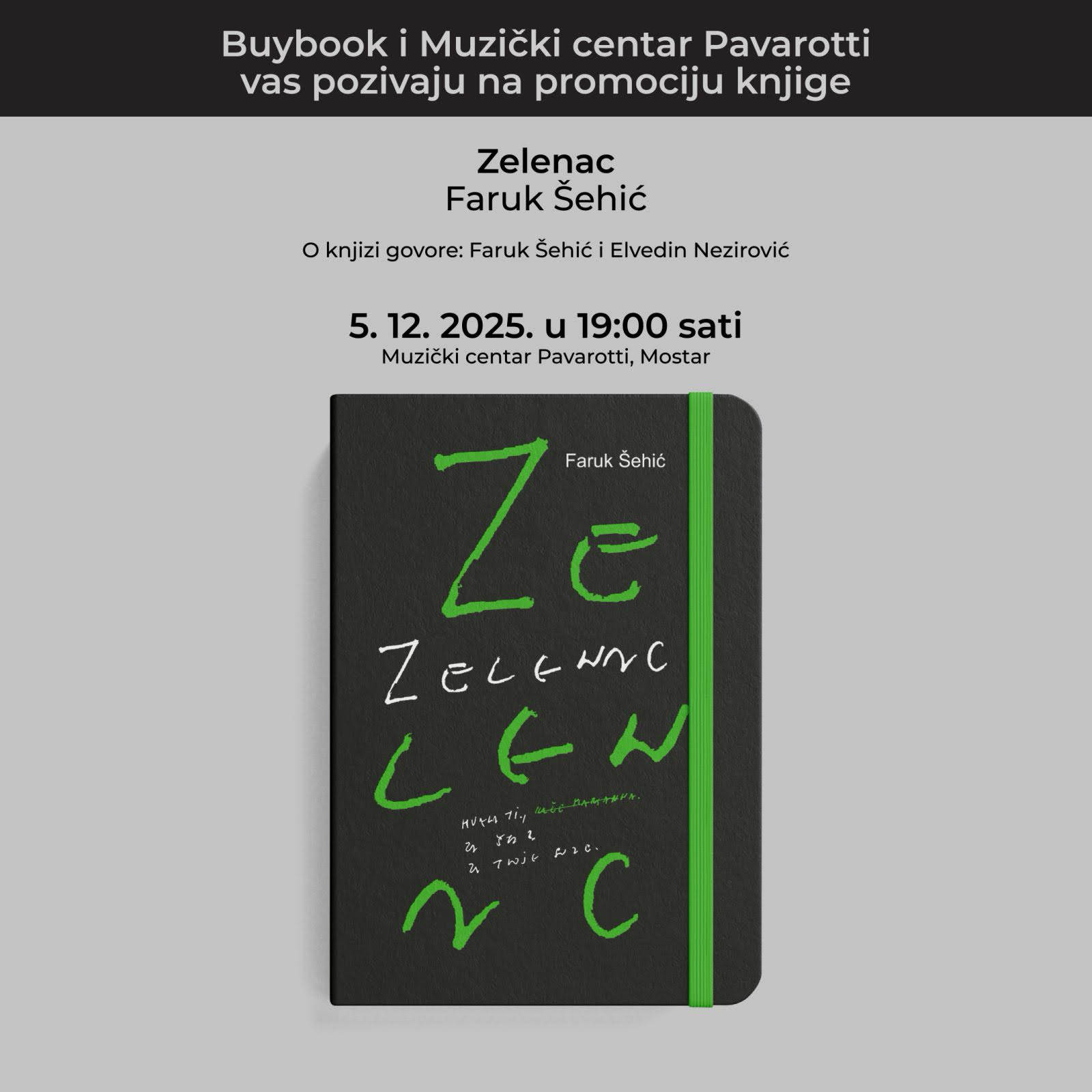 U sklopu ovogodišnjeg izdanja Mix Art Festa, kojeg organizuje Muzički centar Pavarotti, bosanskohercegovački pjesnik, publicist i pisac, Faruk Šehić, promovirat će svoju novu knjigu – dnevnik „Zelenac“. Knjiga je izašla ove godine u Buybookovoj ediciji „Dnevnik“, koju uređuje Semezdin Mehmedinović. Na zvaničnoj stranici Izdavačke kuće „Buybook“, u opisu knjige stoji da je „Zelenac“ nefikcijska proza...Read More